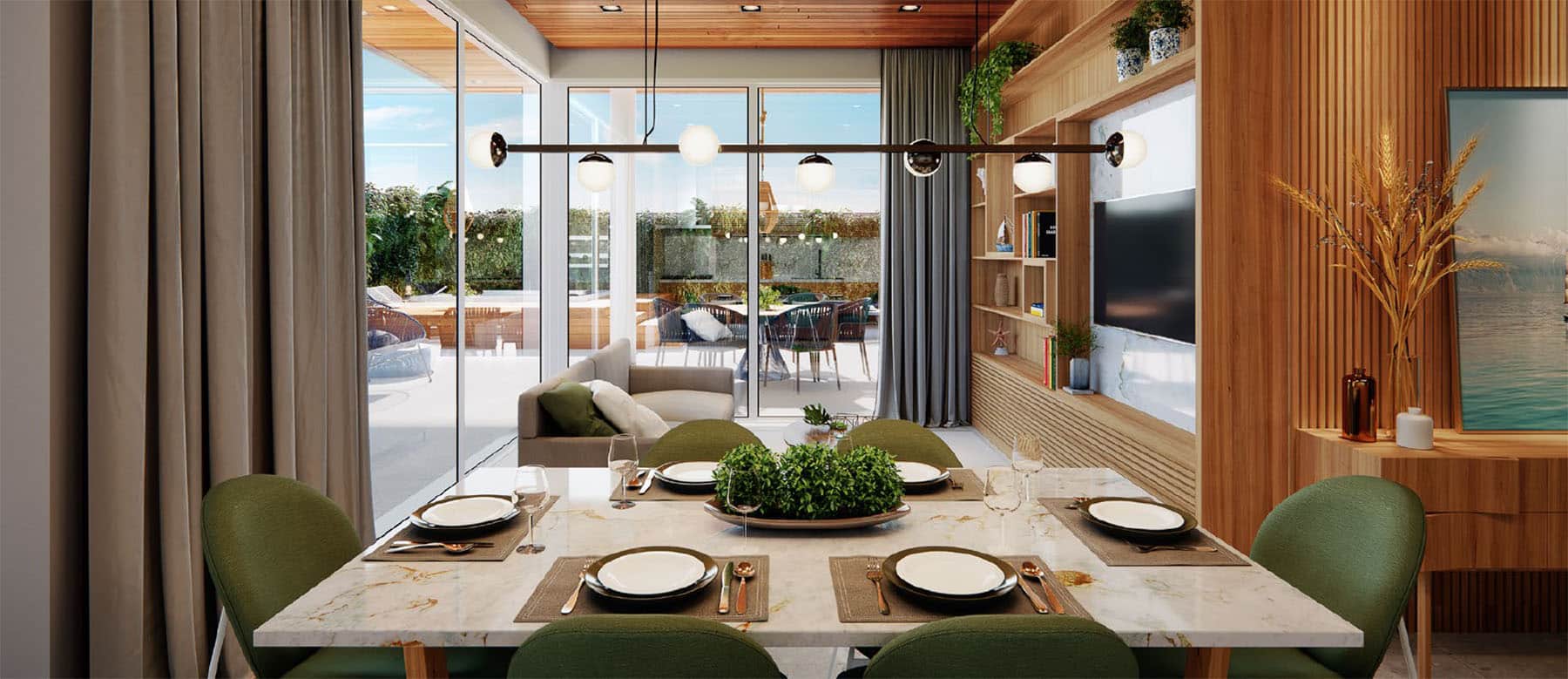 - Varanda contínua que provoca amplitude e comunicação dos ambientes